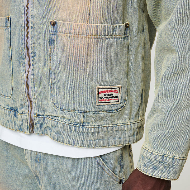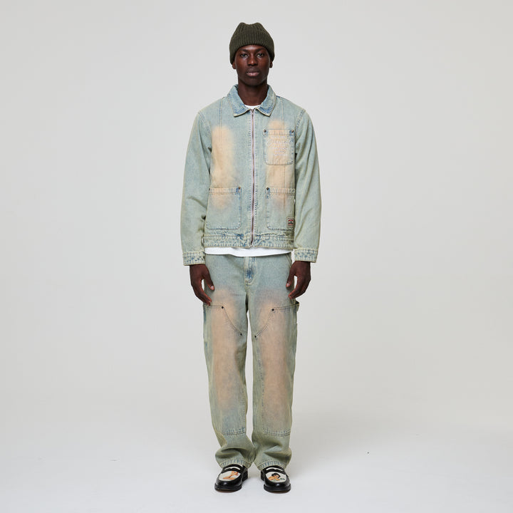 Inspired by mechanic uniforms and workshop wear, the Club 91 Jacket is bleached, dirt-washed, and ready for the grind.