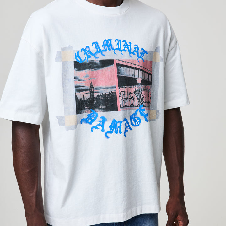 Heavy 220gsm cotton, boxy cut, screen-printed artwork. No two perspectives the same.
