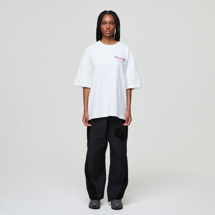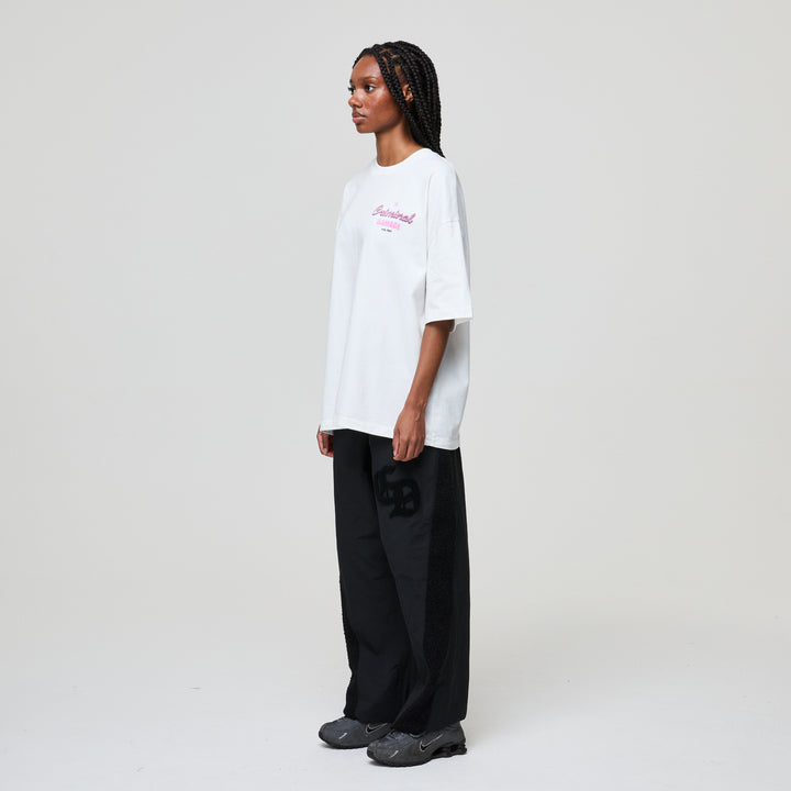 Bold graphic hits front and back, soft heavyweight cotton cut loose for movement and moments in transit.