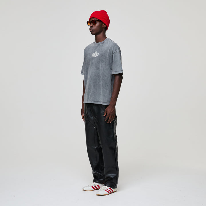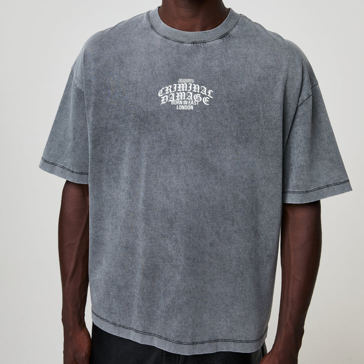 An extension of the hoodie, this Logo Mania Tee plays with layered branding through mixed embroidery and print. 220gsm cotton, acid washed for lived in edge.