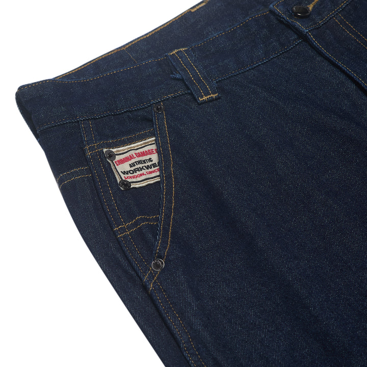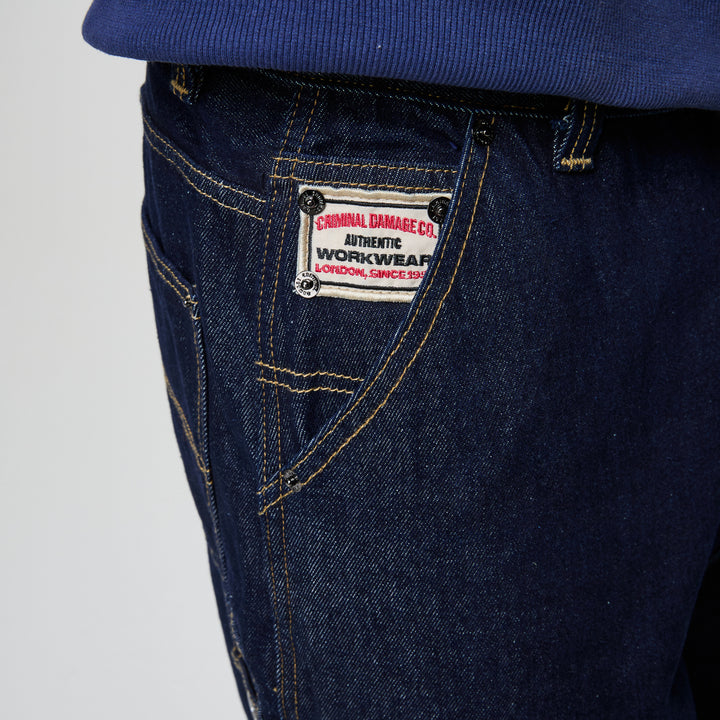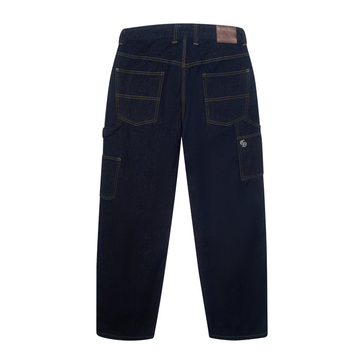 Double knee patches, tobacco contrast stitch, and reinforced rivets channel workwear heritage, while the straight leg fit and outdoor lean keep things modern.