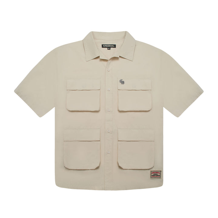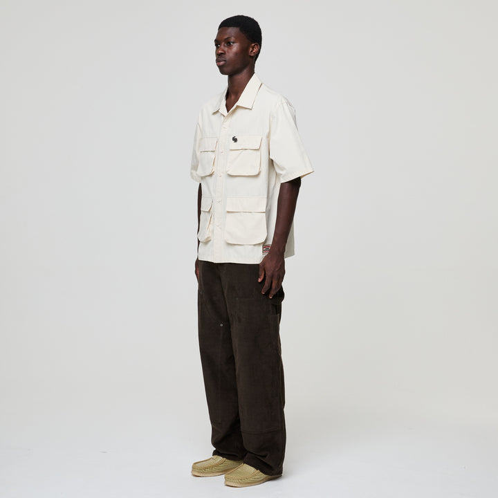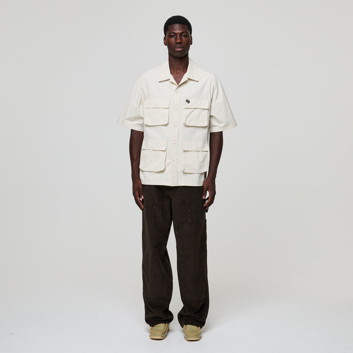 Clean lines meet functional pockets. The Patterson Shirt is built from crisp poplin and detailed with four front 3D patch pockets, dyed-to-match buttons, and a raw-edge twill appliqué logo at the back.