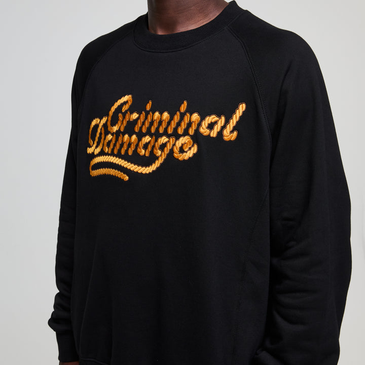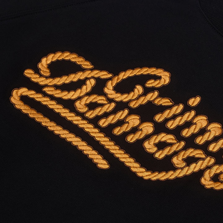 Featuring rope effect appliqué embroidery across the chest, ribbed trims, and set in sleeves for a structured silhouette. A staple that blends rugged texture with refined finish.