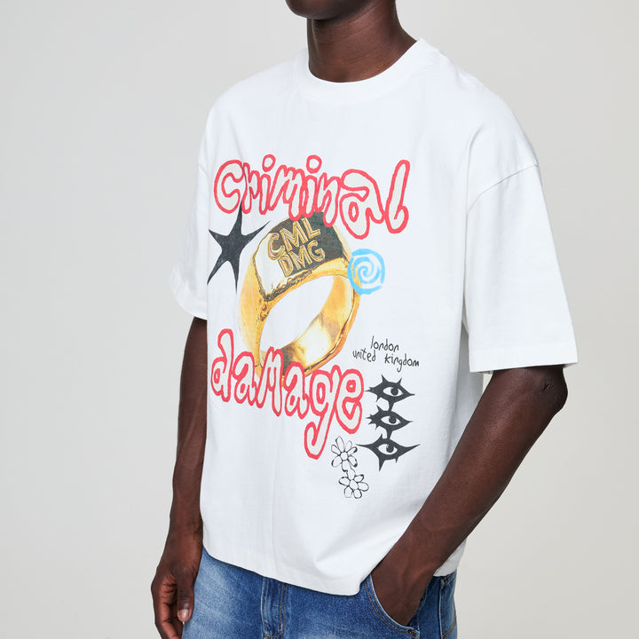 Featuring a refined embroidered signet ring motif across the chest, the clean cut and understated detail speak volumes. 220gsm cotton, boxy fit made to wear, made to last.