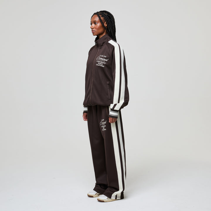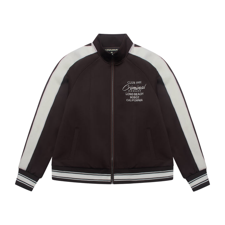 A clean cut with athletic intent. The Pin Tuck Track Top features structured seam detailing across the chest and arms, 3D embroidered branding, and a high stand collar.